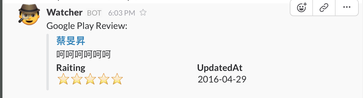 Crawling Google Play reviews and send latest reviews into your slack channel.